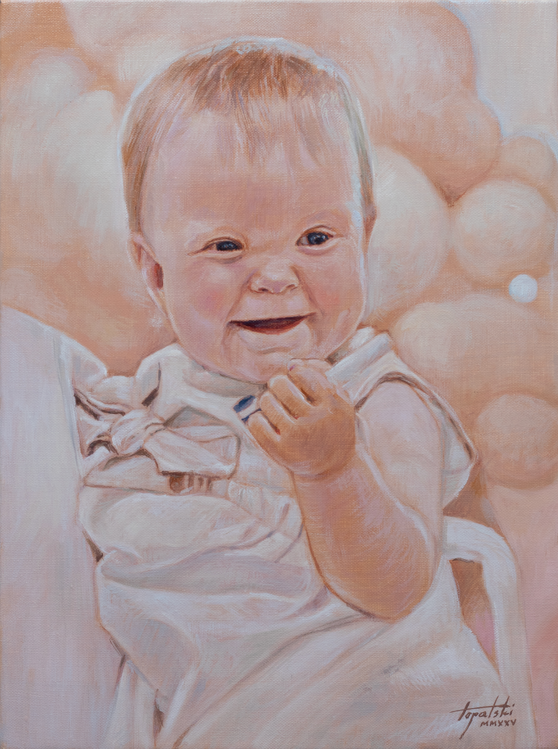 Klara – 40x30cm – Umetnička slika – dečiji Portret po fotografiji po narudžbini Ulje na lanenom platnu 2025 – umetnik Darko Topalski