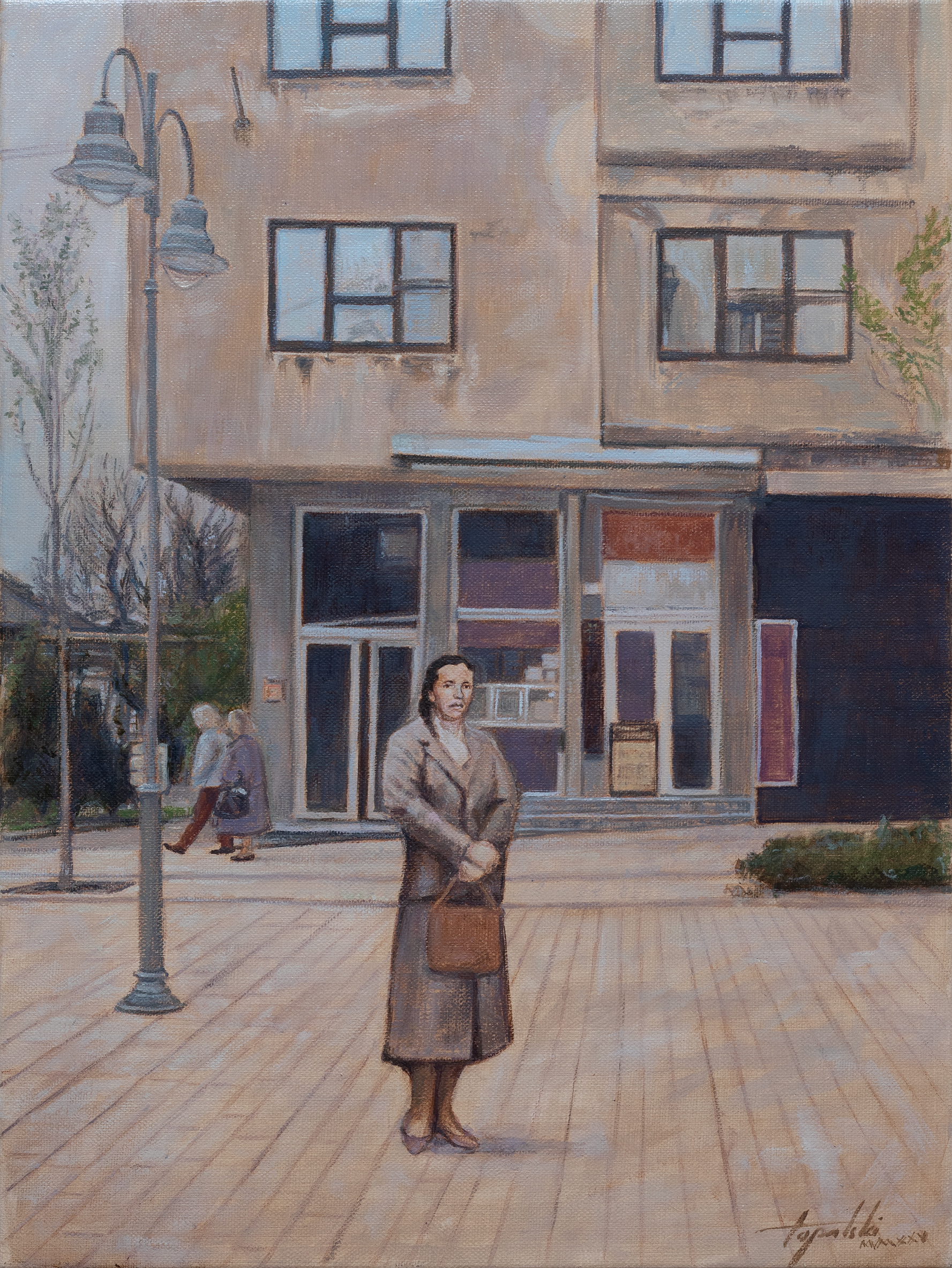 Majka ispraća Mileta – 40x30cm- 2025. – Portret po narudžbini po fotografiji – Ulje na platnu Umetnička slika -umetnik Darko Topalski