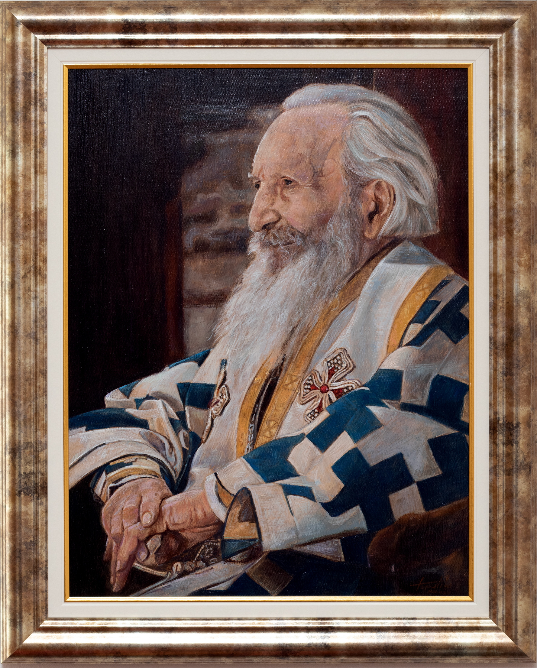 Patrijarh Pavle portret – Umetnička slika 60x45cm sa ramom 74x60cm Ulje na platnu 2025.- umetnik Darko TOPALSKI